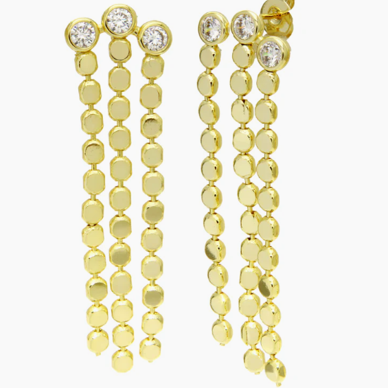 Nuestros Aretes Triple Bezel Falling Gold Earrings con engaste en bisel para crear el look perfecto de día o de noche! ¡Si quieres ir más allá, este es el indicado!